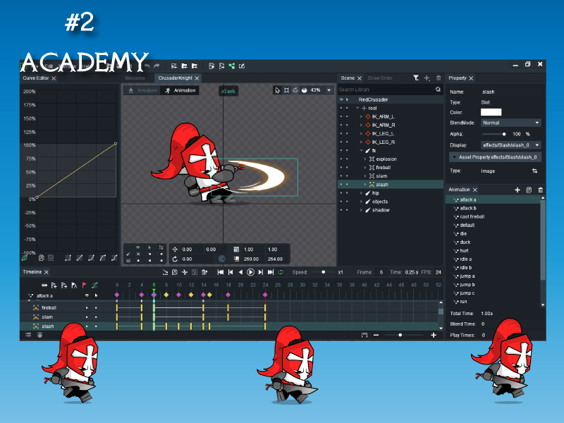Animations are done using the free and powerful animation software DragonBones. It has support for major game engines.
